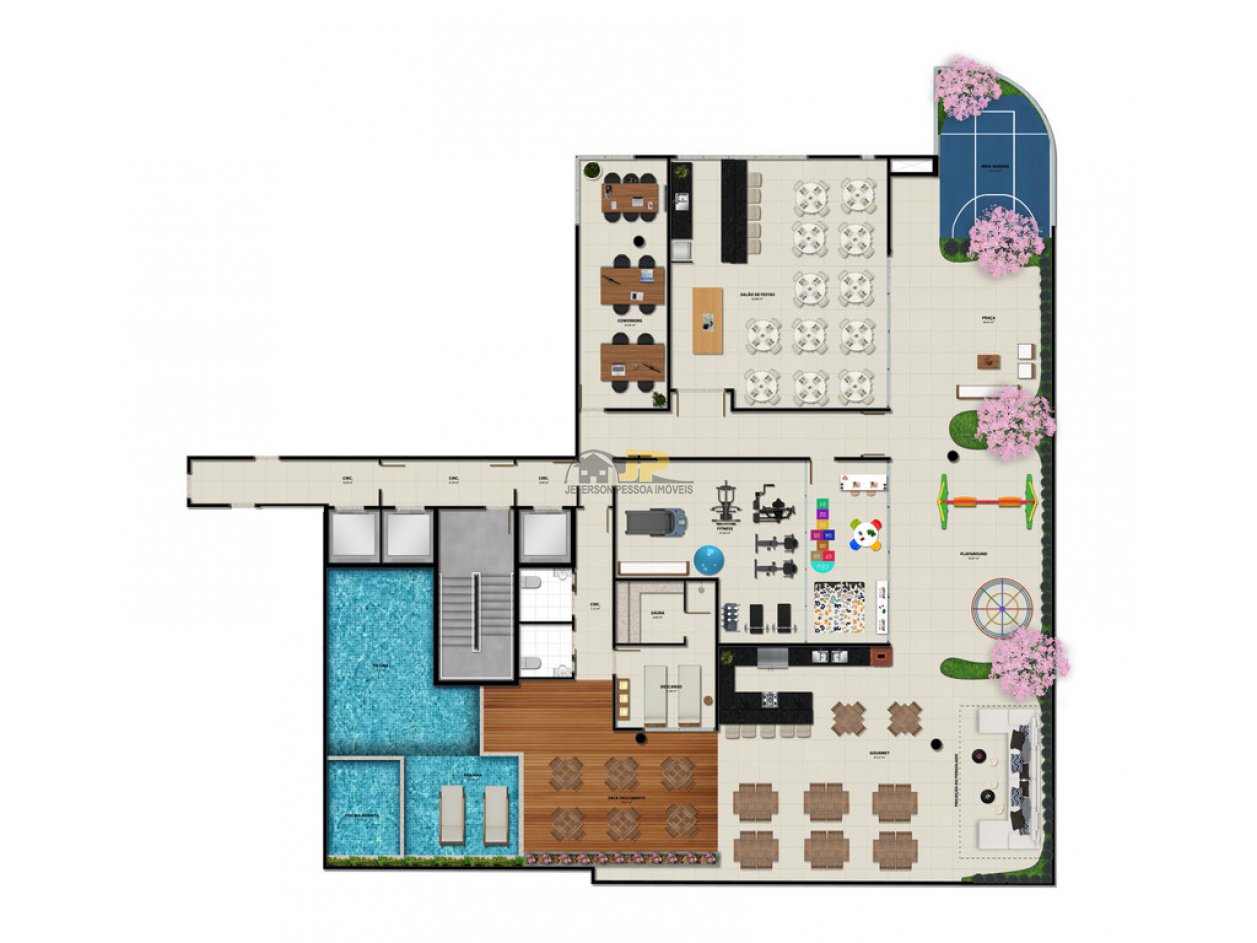 Lazer completo com piscina adulto, piscina infantil, prainha, deck descoberto, sauna, espaço fitness/academia, espaço gourmet, quadra, playground, brinquedoteca, salão de festas, praça das mães e coworking.