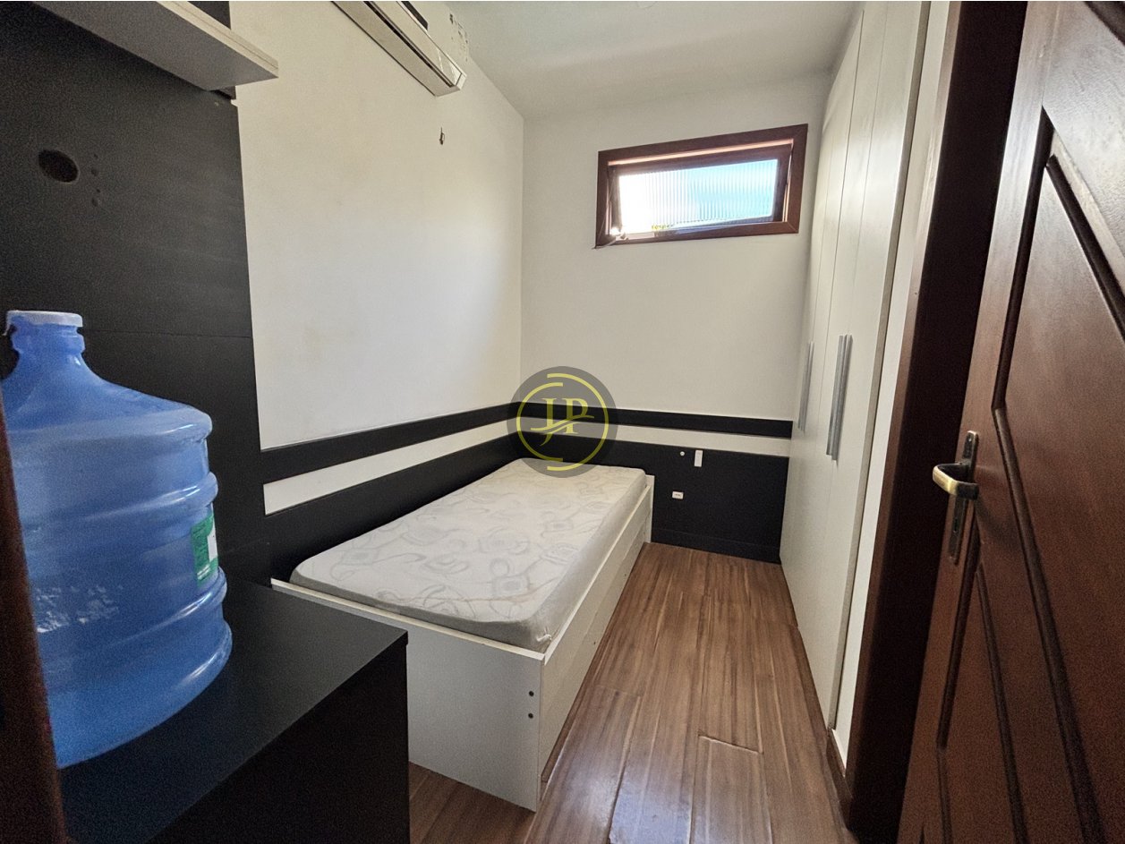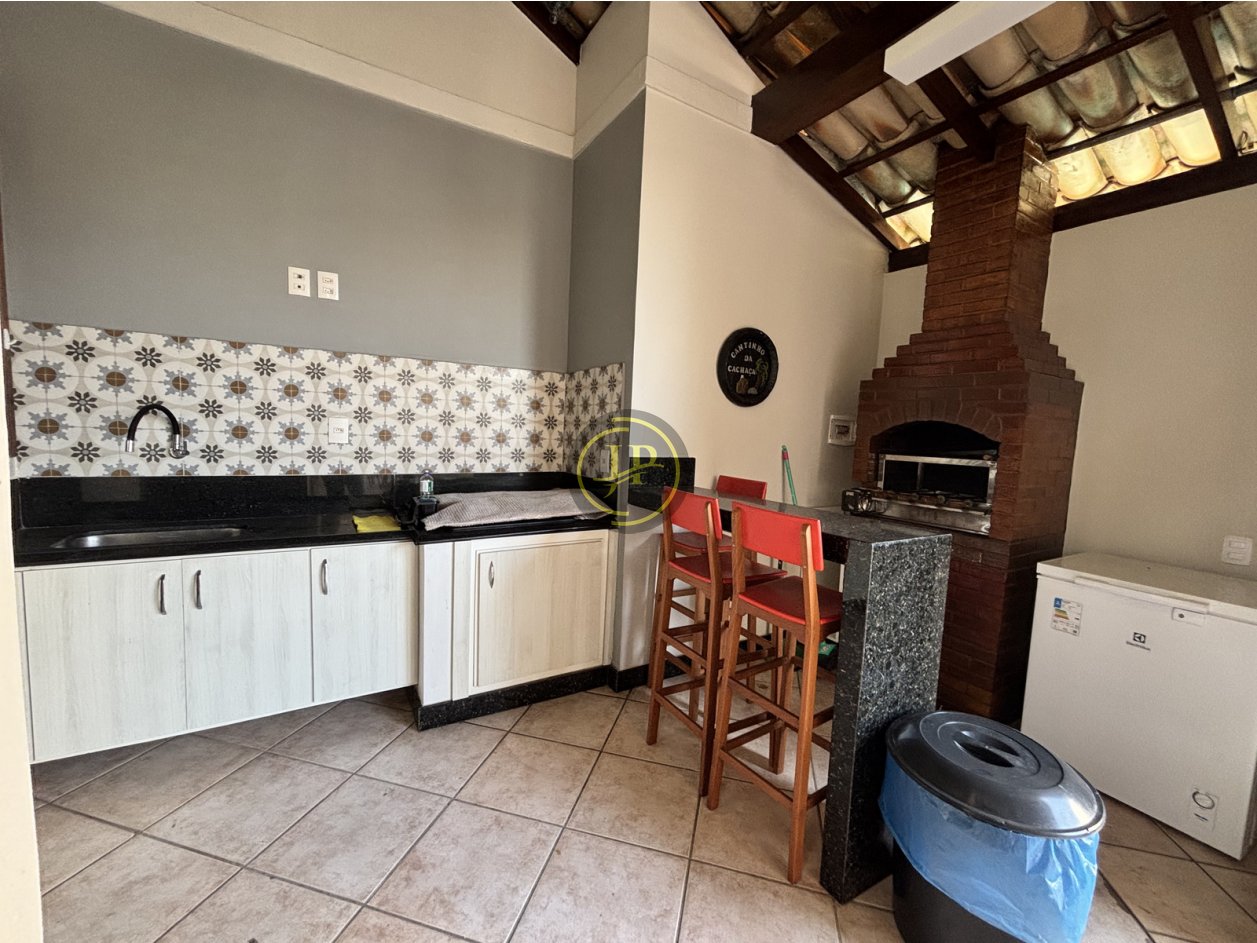 A casa conta com 03 quartos, sendo um suíte, sala ampla para dois ambientes, pé direito duplo com sala privativa. Todos os quartos possuem armários embutidos e a casa dispõe de muitos armários e móveis fixos em todos os ambientes. A cozinha é totalmente montada, com armários planejados, fogão, forno e coifa embutidos, despensa e quarto de dependência com banheiro
