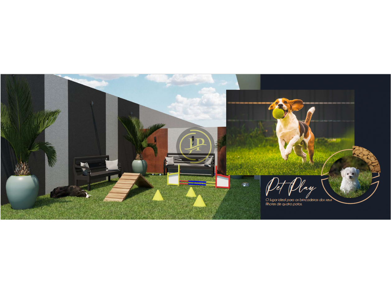 Lazer completo com piscina adulto e infantil, salão de eventos, quadra de tênis, beach tênis, campo society, area gourmet, acesso à Praia do Sapê, acesso à Praia do Tombo, coworking, espaço fitness, espaço pet, biribol, beach support, playground.