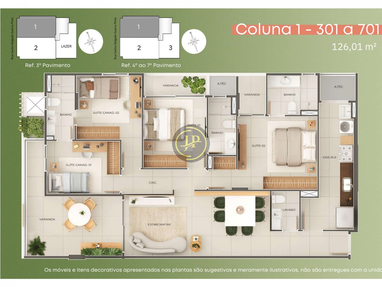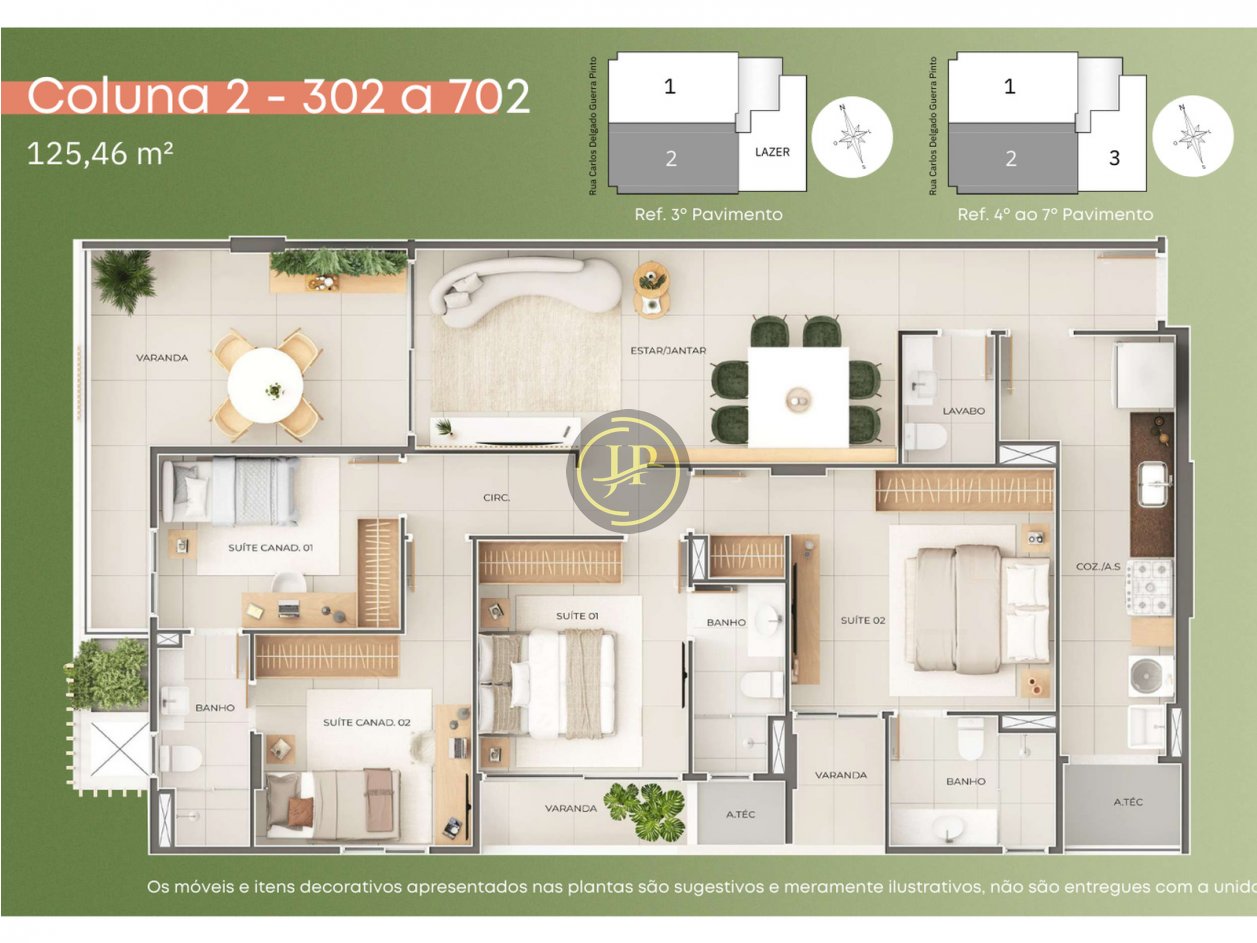 Apartamento de 04 suítes sendo duas canadenses, sala ampla para dois ambientes, varanda, cozinha, lavabo, área de serviço e 02 vagas de garagem