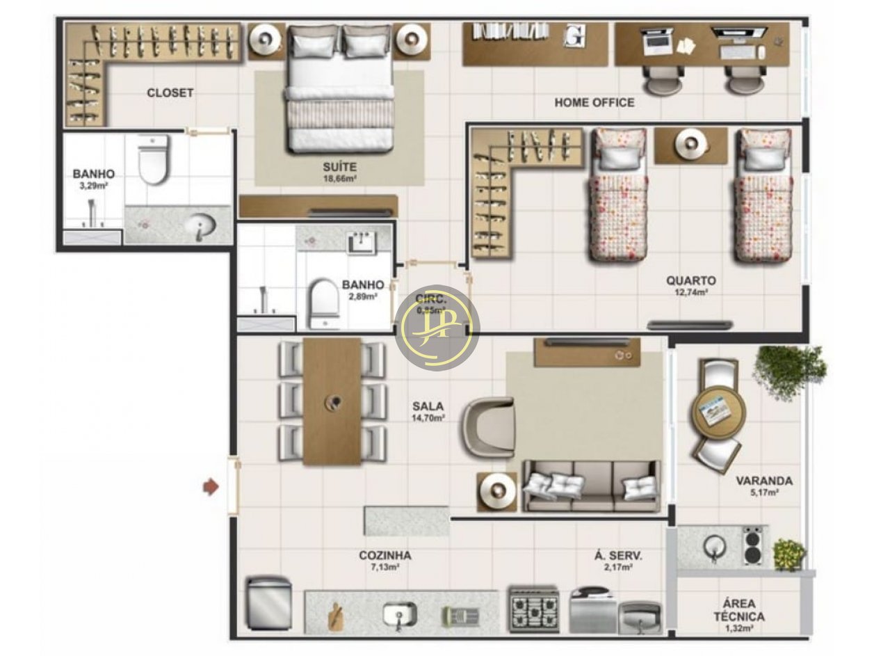 | Metragem | 77,55m² |