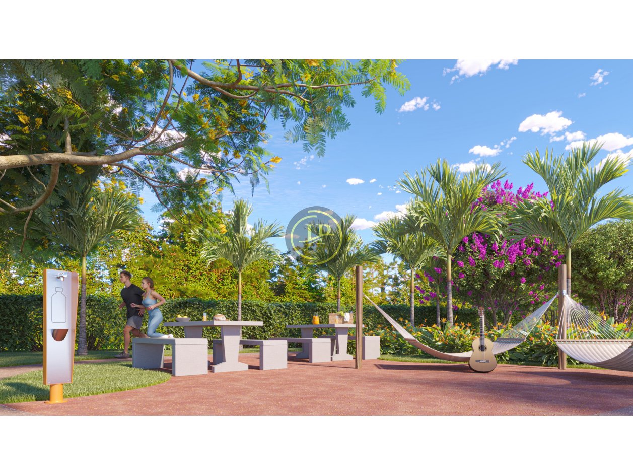 5.067m² de área verde preservada: Pórtico de entrada, caminho de saibro com iluminação, área de preservação permanente, espaço fitness, pracão com dog poop bag, praça para piquenique com pomar, barreira vegetal