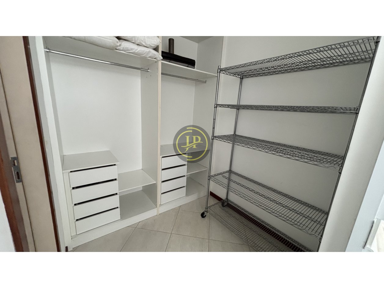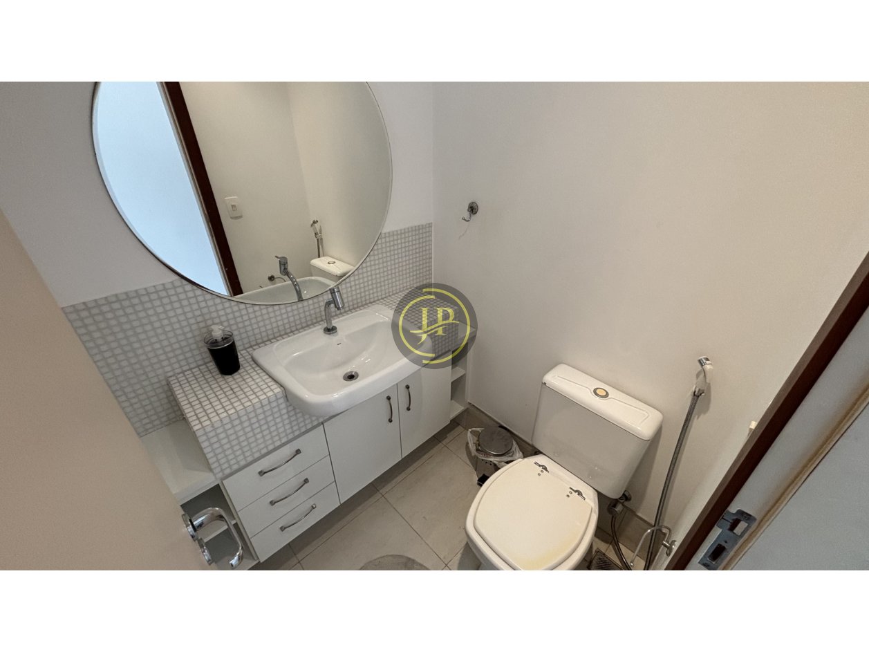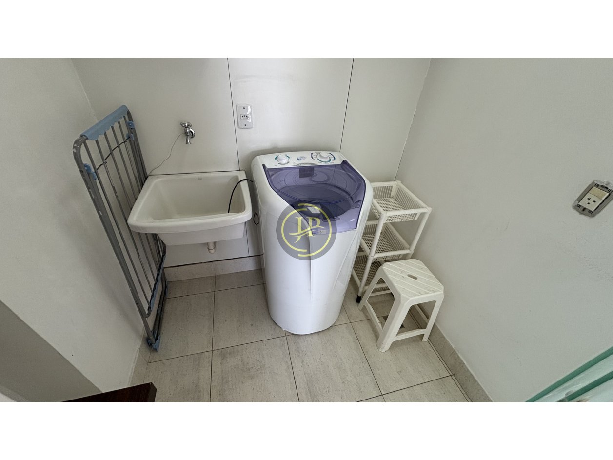 Studio com mezanino totalmente mobiliado, frente, andar alto, pé direito duplo, 01 suíte com cama box e closet, banheiro da suíte com armários, bancada em mármore blindex e espelho, sala ampla para 02 ambientes com sofá-cama, poltrona e rack, varanda com vista livre, lavabo com bancada em mármore e espelhos, cozinha equipada com armários sob e sobre a pia, filtro, frigobar, cooktop, micro-ondas, coifa, mesa de vidro com 4 cadeiras, área de serviço com armários e máquina de lavar, piso em porcelanato.