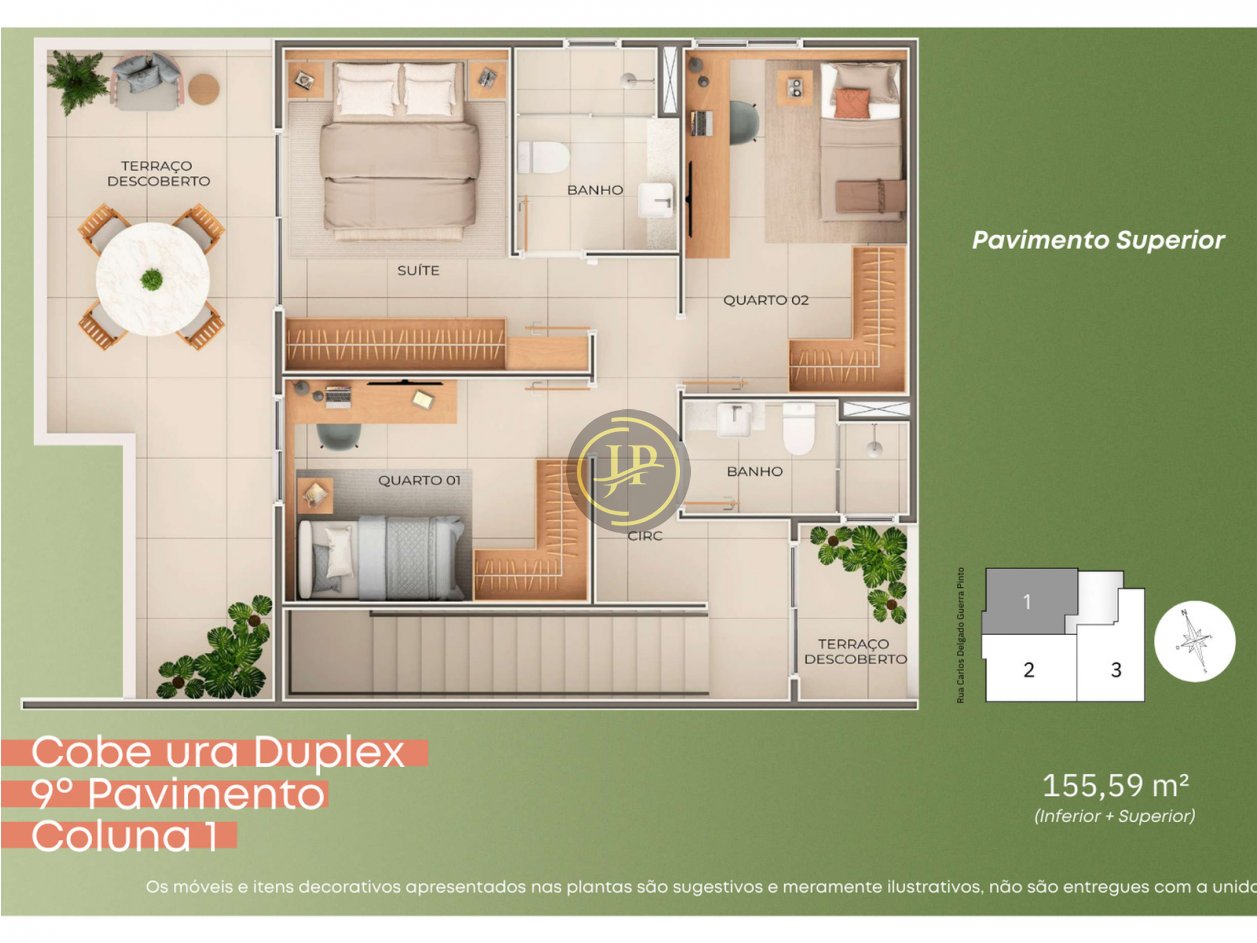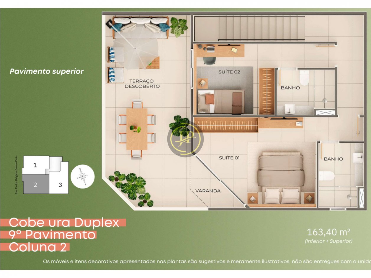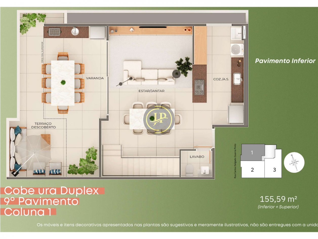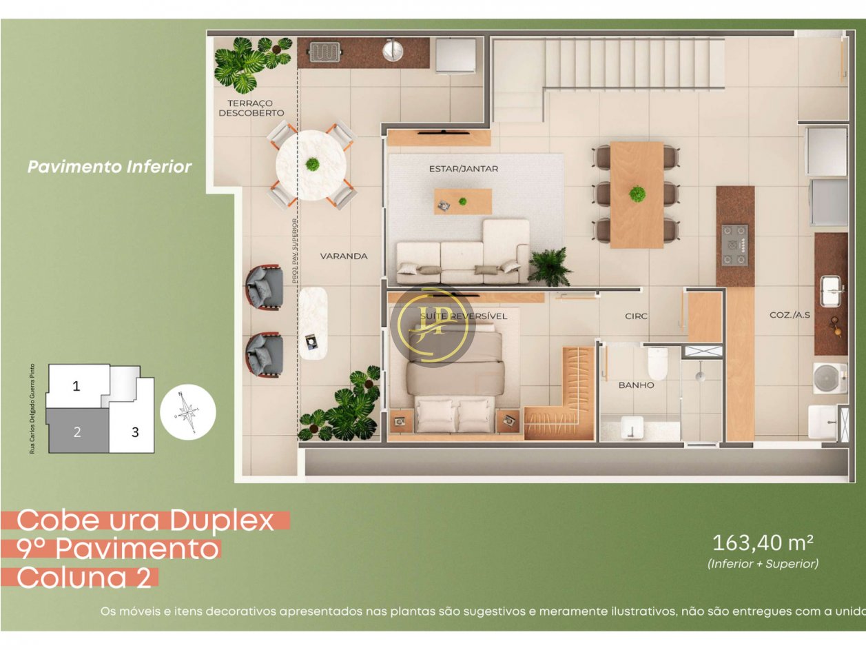 Cobertura duplex com 03 vagas de garagem.