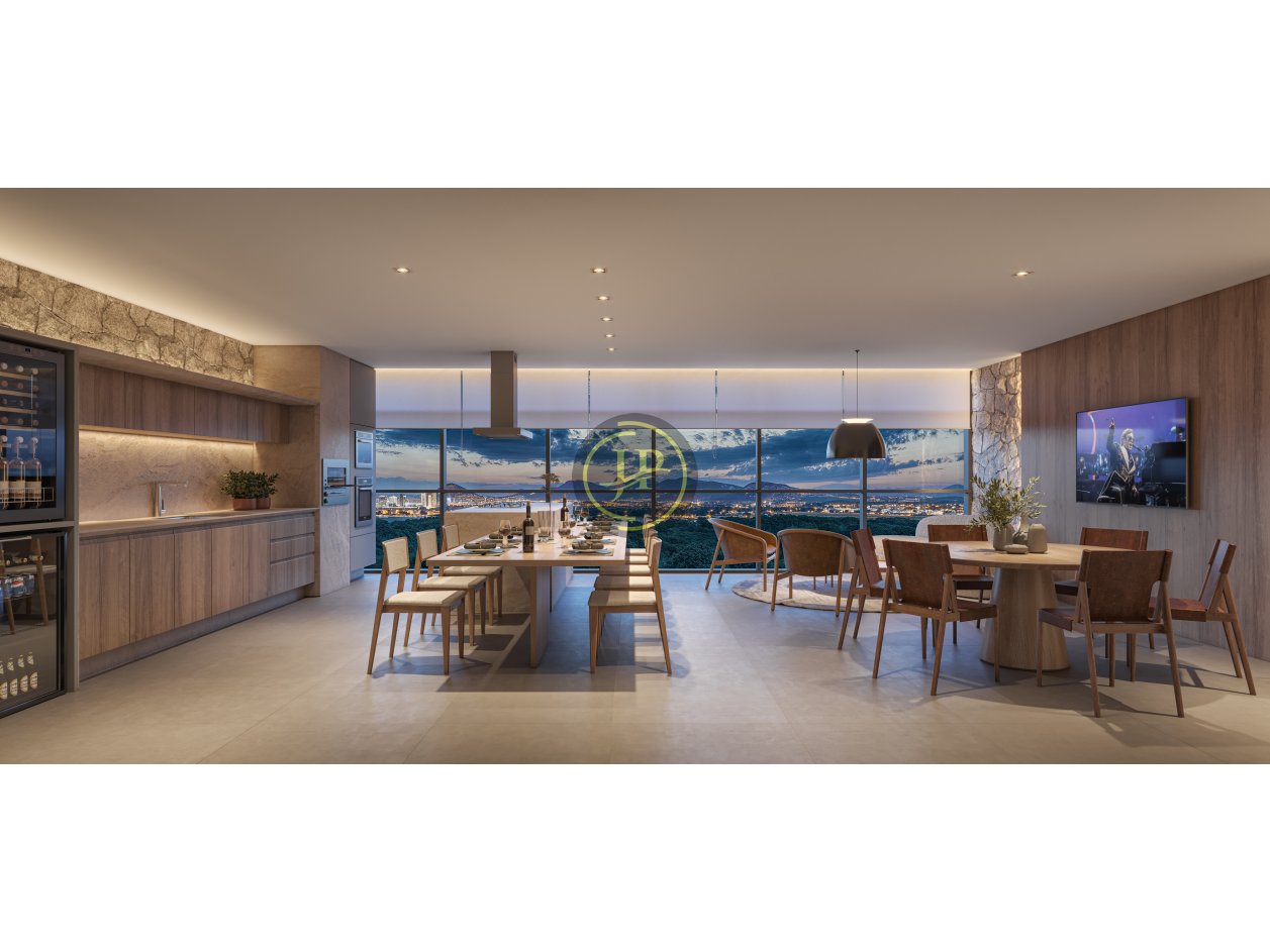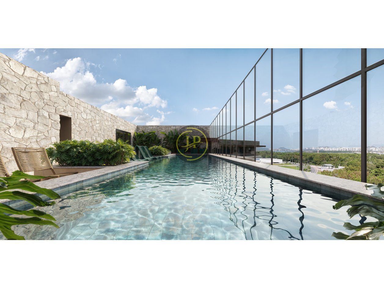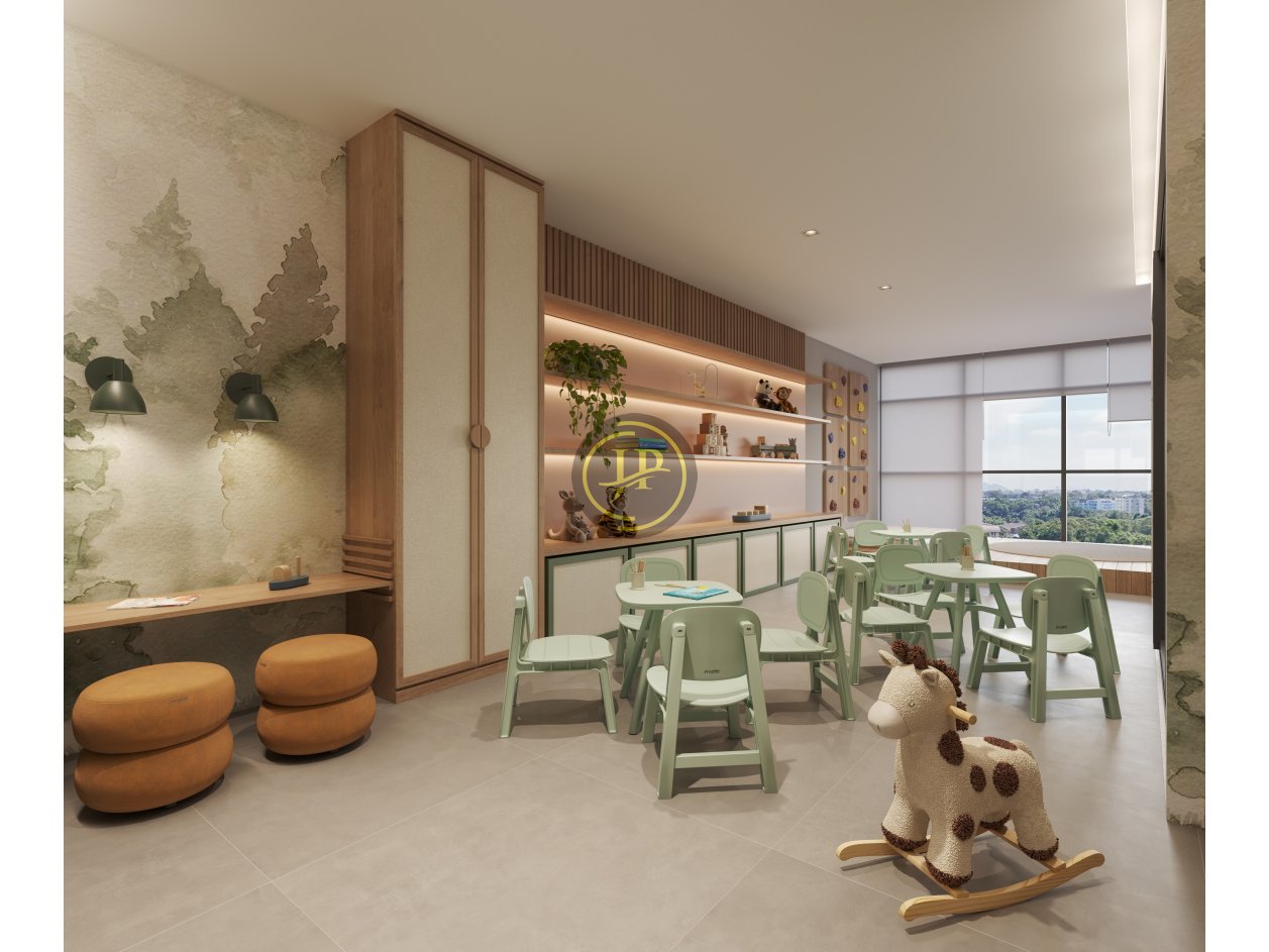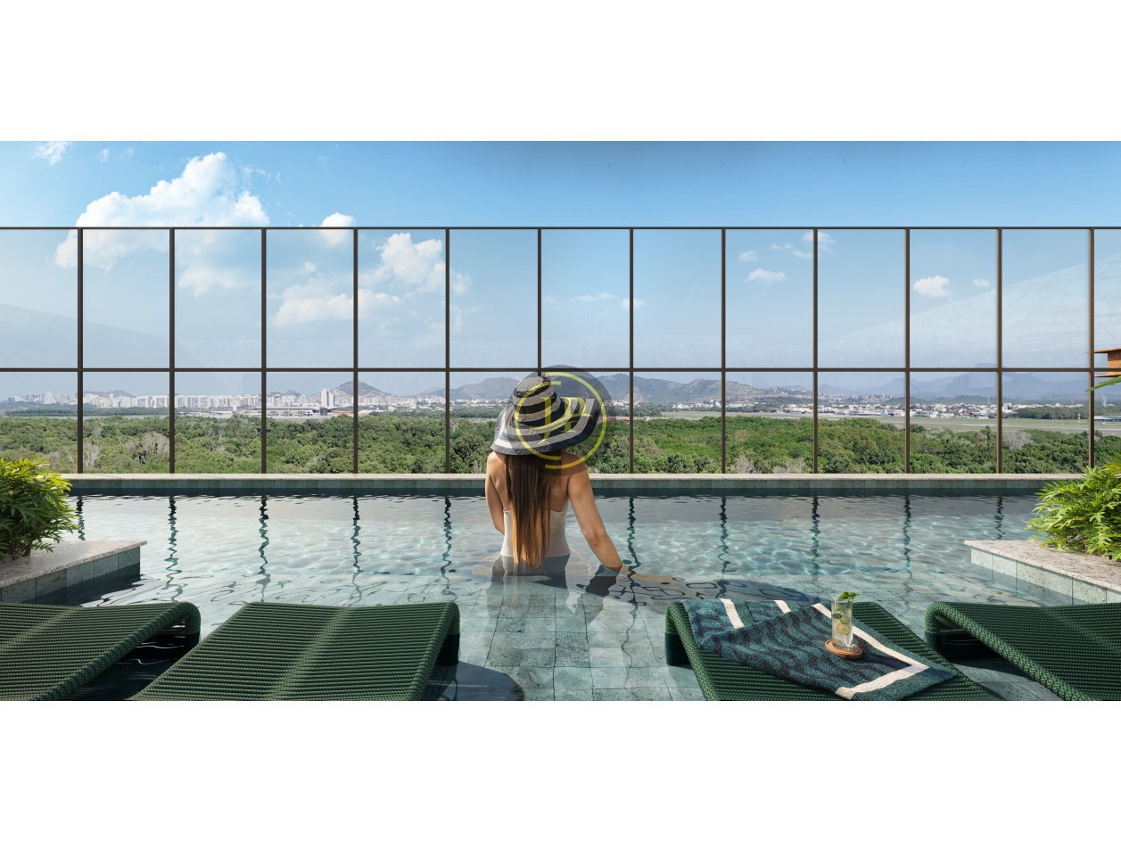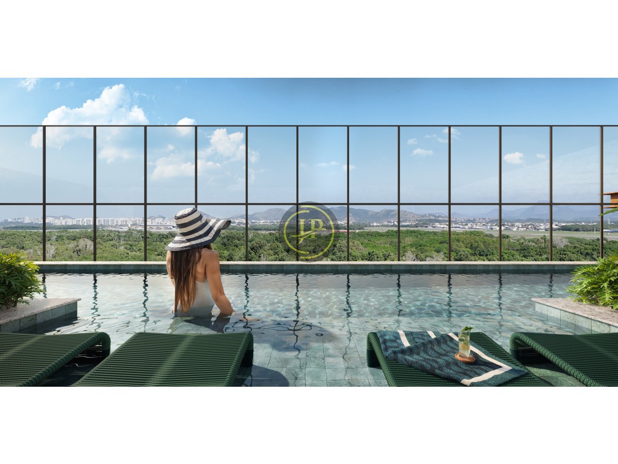 Lazer no rooftop com piscina, prainha, solarium, grill gourmet, espaço gourmet, salão de festas, salão de jogos, brinquedoteca, coworking, repouso, ducha, sauna, academia, minimercado.