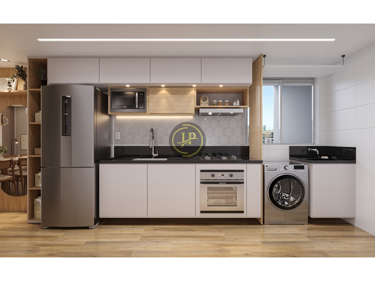 Apartamento de 43,42m² com 01 quarto amplo e excelente aproveitamento de espaço para decoração, banheiro em alto padrão, cozinha ampla com área de serviço,sala de estar e jantar com ótimo espaço de circulação e varanda com pia para decoração de área gourmet e 01 vaga de garagem.