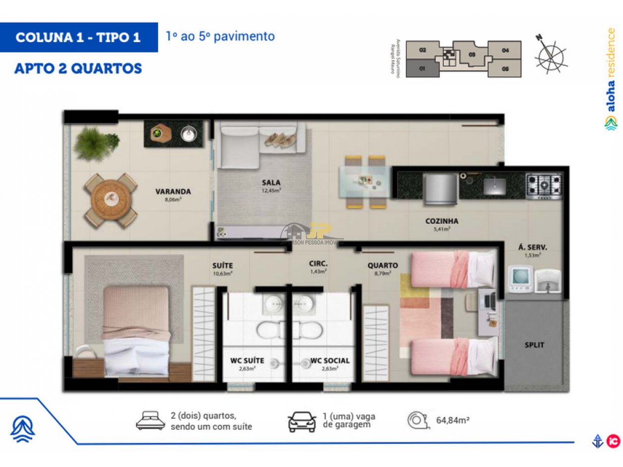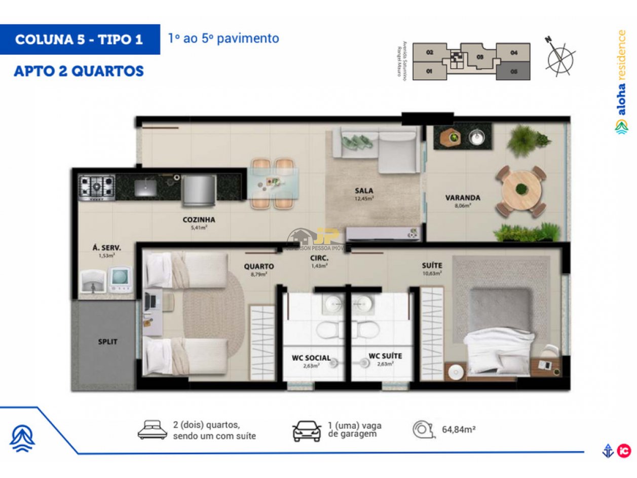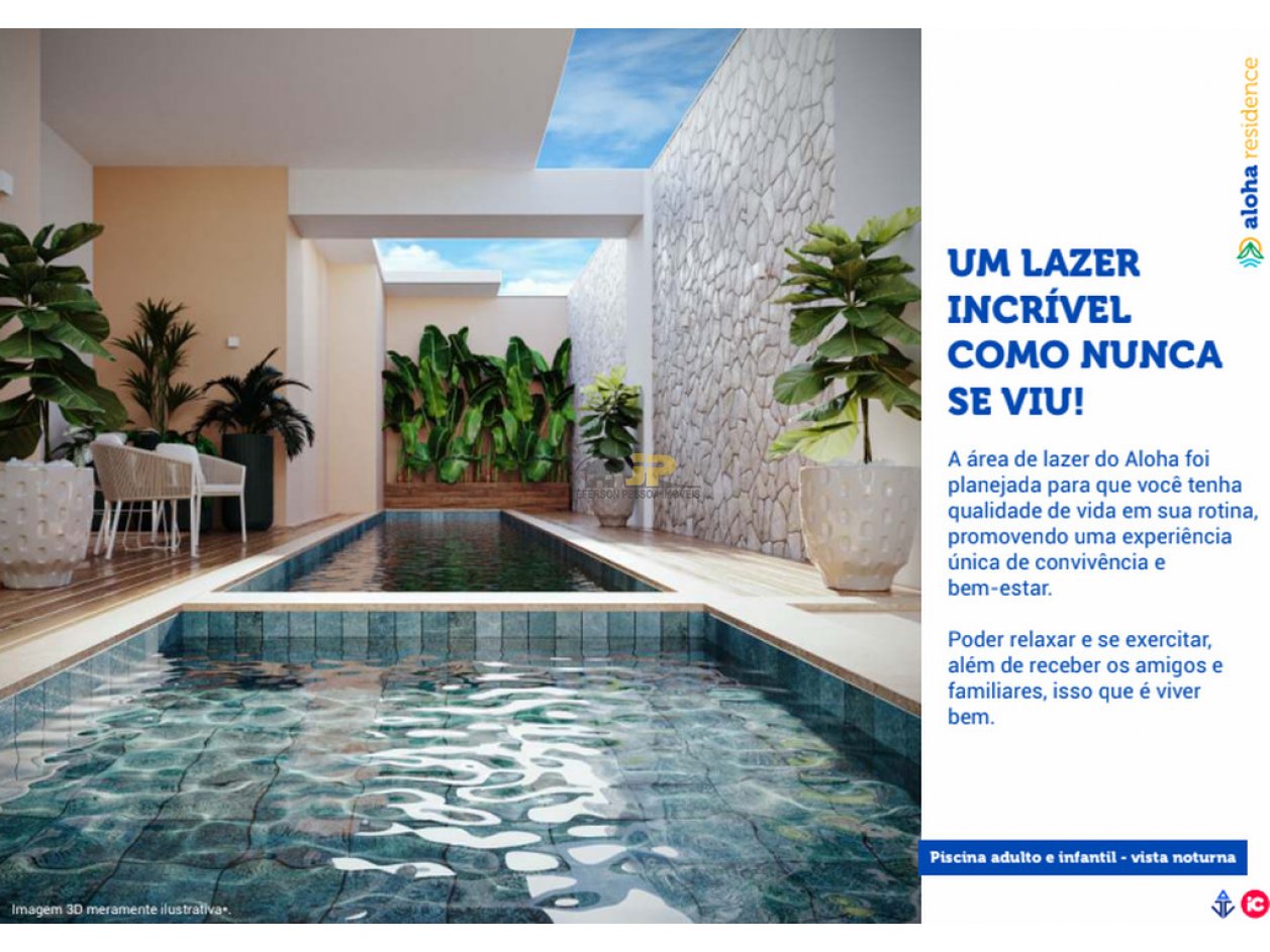 Área de lazer com piscina adulto e infantil, cross training, lounge aloha, pub, brinquedoteca, espaço gourmet e 2 churrasqueiras.