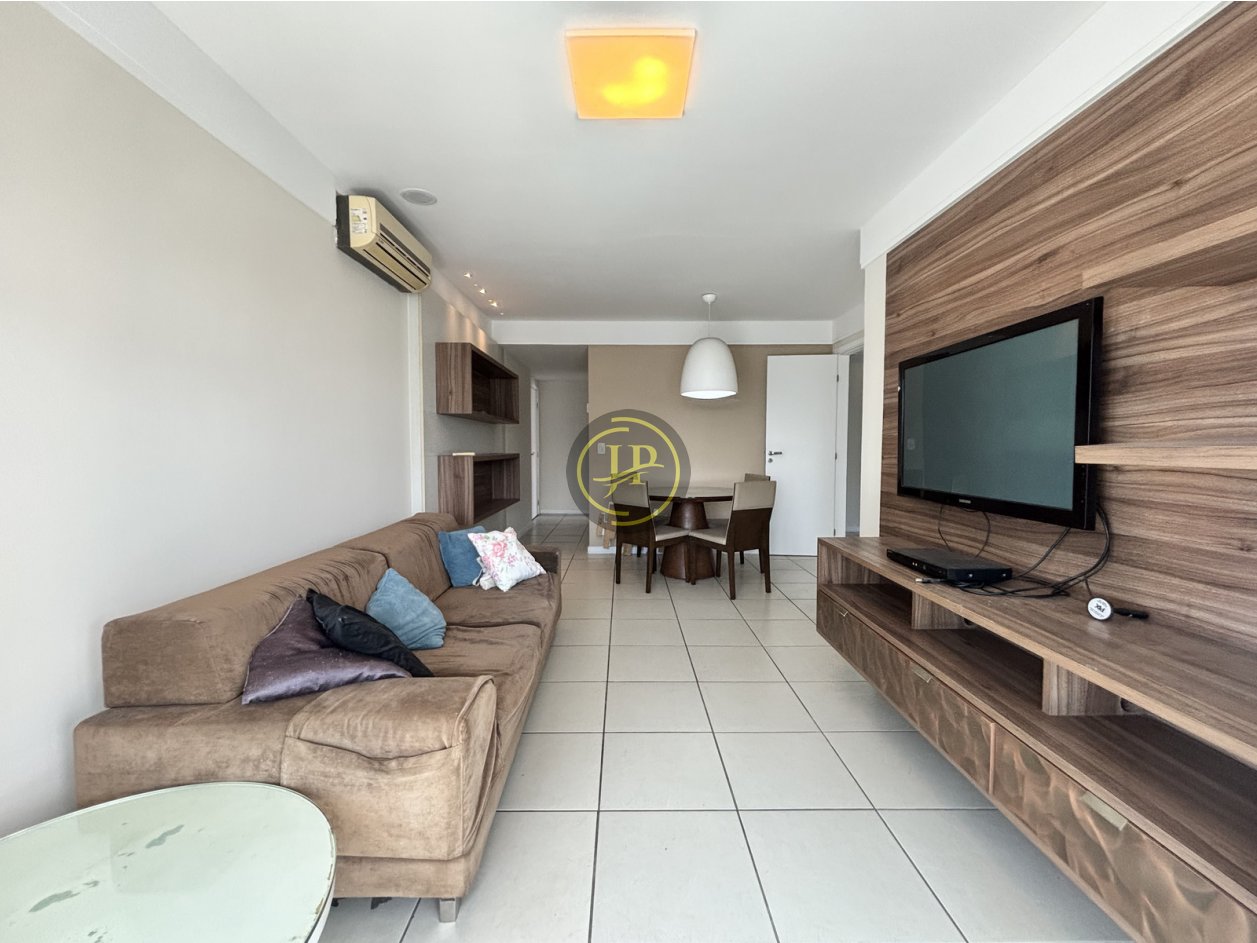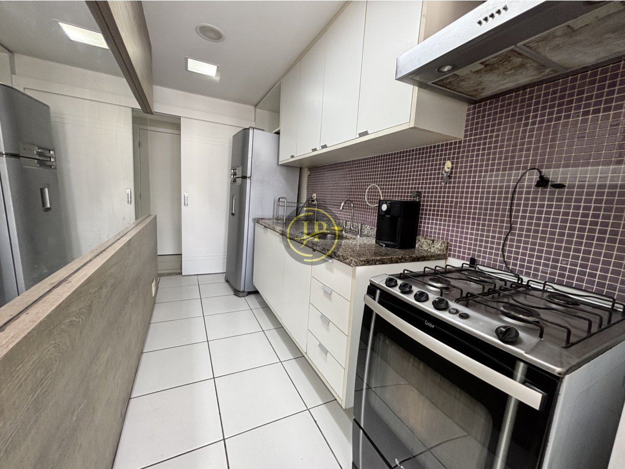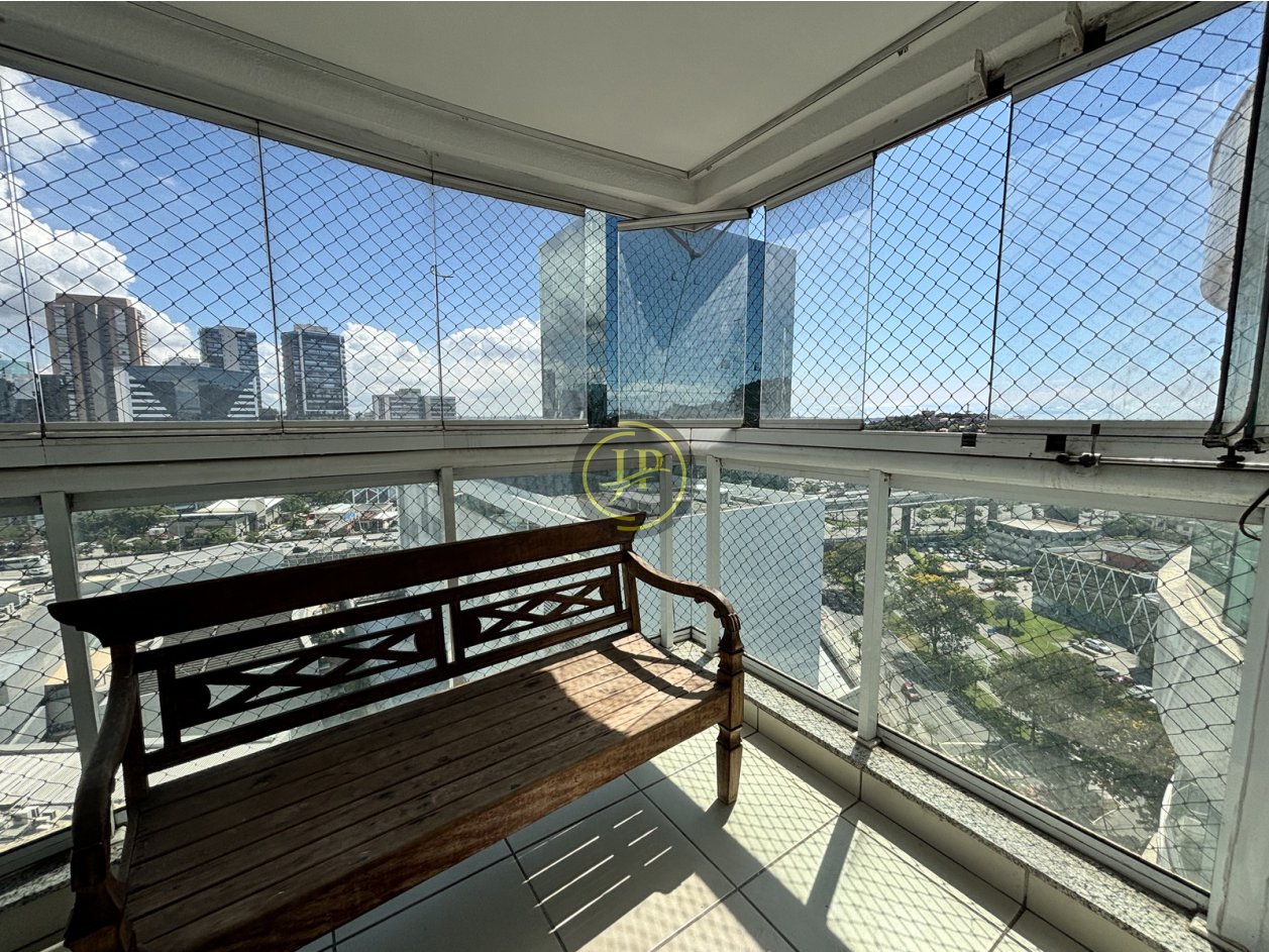 Apartamento montado com 03 quartos sendo 2 suítes com armários, sala ampla para 2 ambientes, varanda ampla com fechamento de vidro, banheiro social com box de vidro, armário e espelho, cozinha montada com armários sobre e sob a pia, área de serviço, piso em cerâmica.