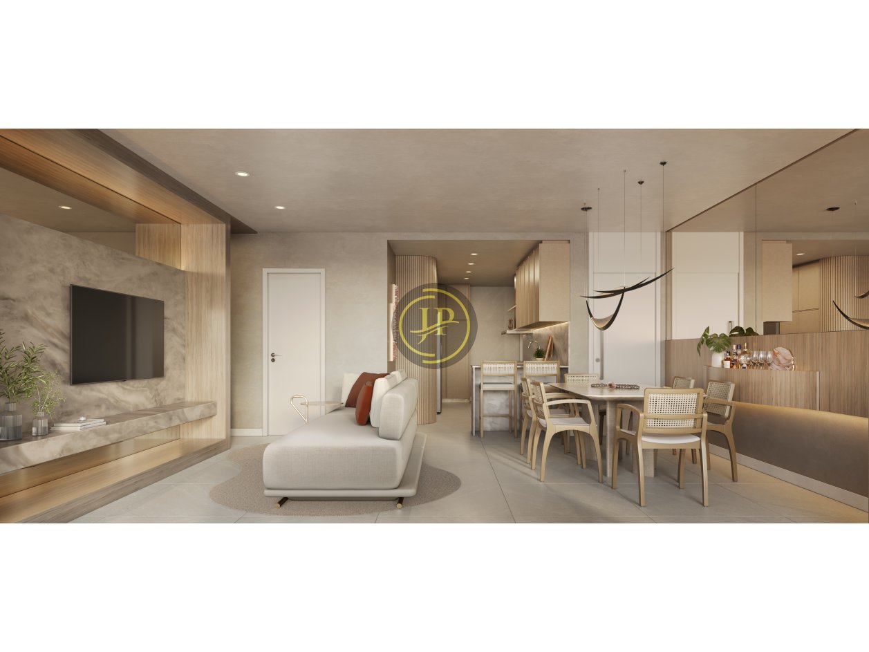 Apartamento de 95,45m² com 03 quartos/suíte, sala ampla para dois ambientes, varandas,banheiro social, cozinha, área de serviço e 02 vagas de garagem.